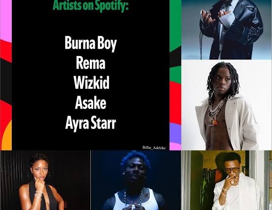 Spotify has named Afrobeats superstar Damini Ebunoluwa Ogulu, widely known as Burna Boy, as one of the top Afrobeats artists of the year.