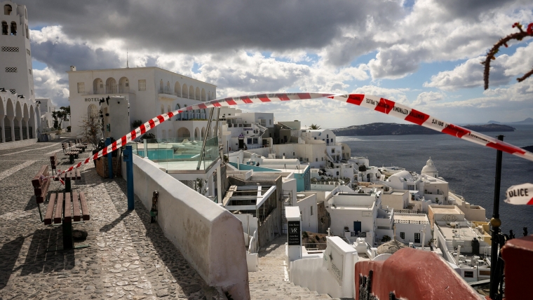 Thousands of residents are fleeing the Greek island of Santorini amid a wave of seismic activity.