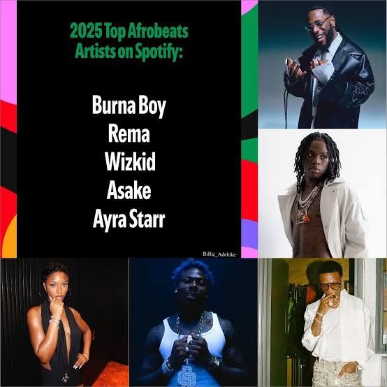 BURNA BOY, WIZKID, AYRA STARR TOP SPOTIFY’S 2025 AFROBEATS LIST